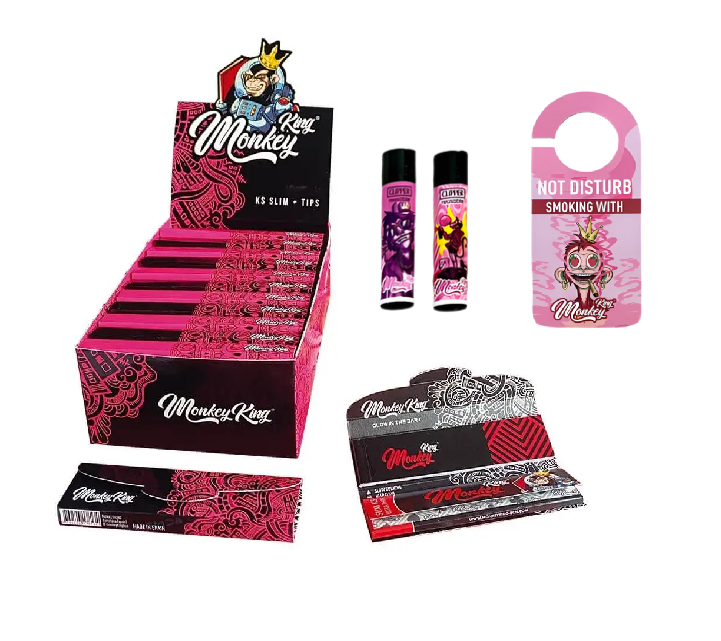 Monkey King Paper Pink KS + Tips 48 Stk + CLIPPER Lighter 48 Stk