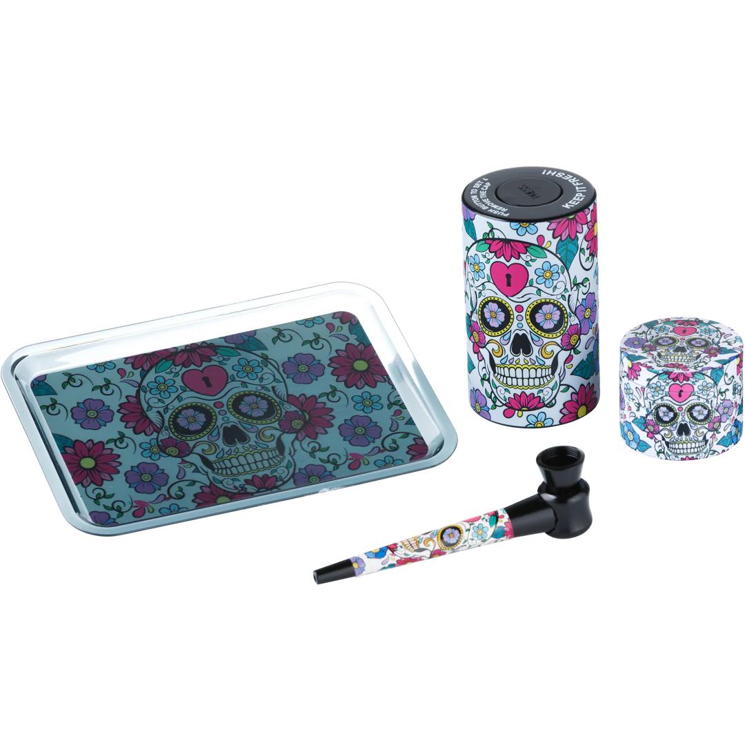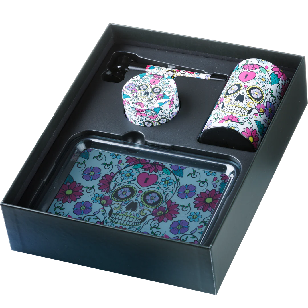Super Gift Set Grinder/Pipe/Storage/Flower Skull Box